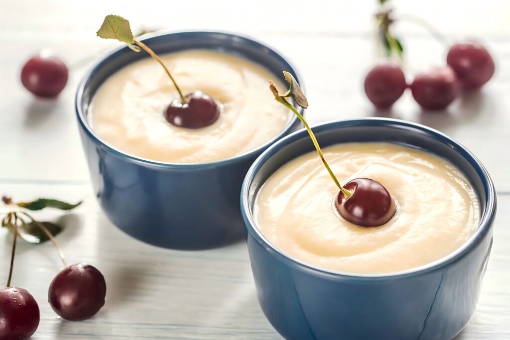 冷藏完成后,取出姜撞奶,用勺子挖出享用。
